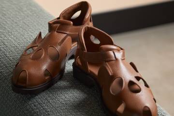 Kadu Dantas fez as intervenções em estilo, acabamento e detalhes da peça, que vêm em três cores – café, whisky e preto – e são feitas de couro resultante de processos que causam o menor impacto possível no ambiente, com curtimento à base de taninos vegetais. O solado é anatômico, com revestimento de espuma na parte frontal e traseira da peça.