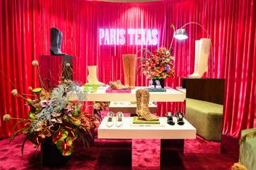 As pop-up stores têm uma cenografia especial inspirada nos principais códigos da Paris Texas que incluem cortinas de veludo e tapetes em tons de rosa e fúcsia traduzindo o DNA da marca, reconhecida por unir a elegância e glamour de Paris ao espírito e força do Texas em seus calçados.